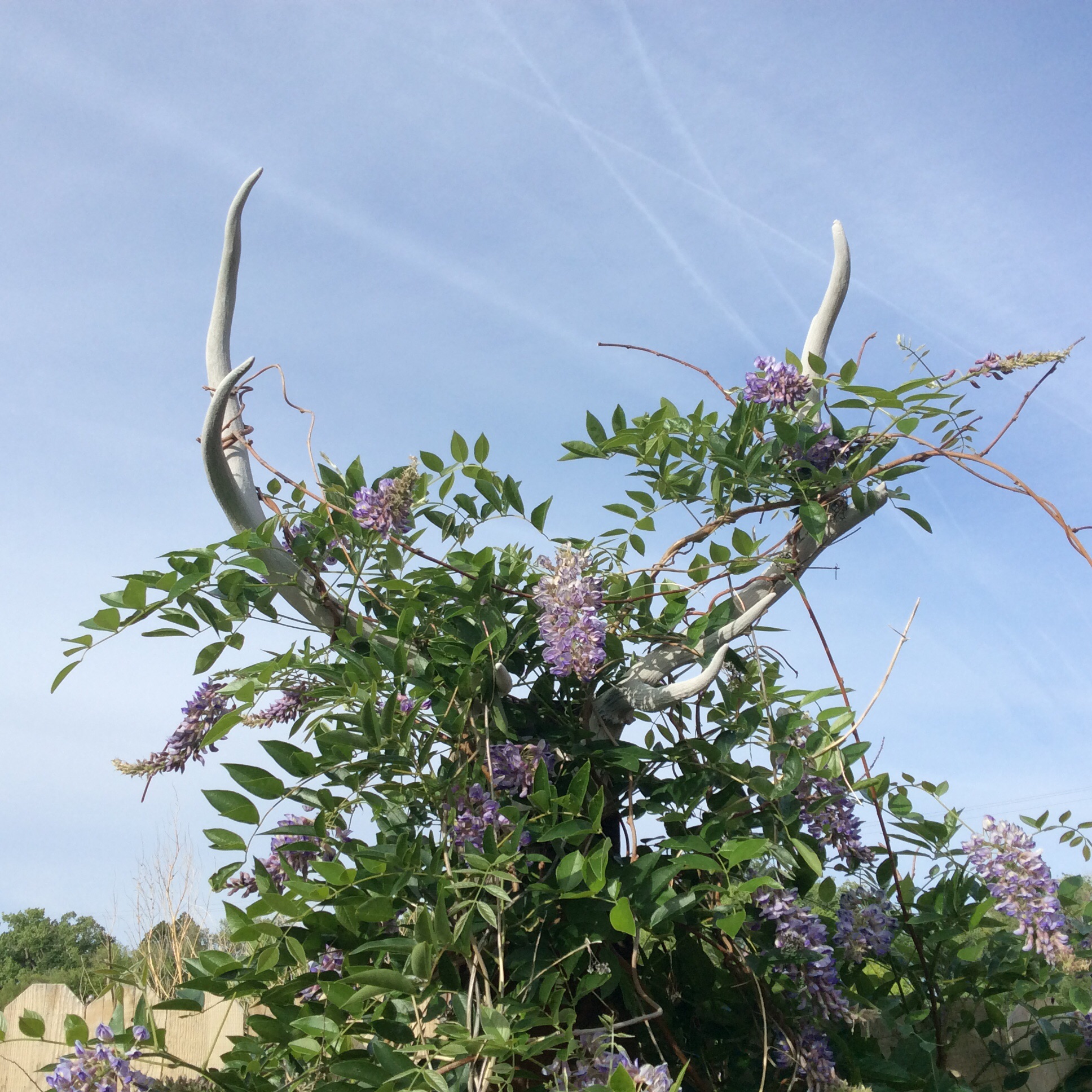 I garden largely for practical reasons: I like to have clean healthy delicious food at my disposal. But however practical your garden, there should be things that make you shiver with pleasure just to look at them. This ambitious outgrowth of my Blue Moon wisteria made me stop and stare when it bloomed. Thanks to the planet!