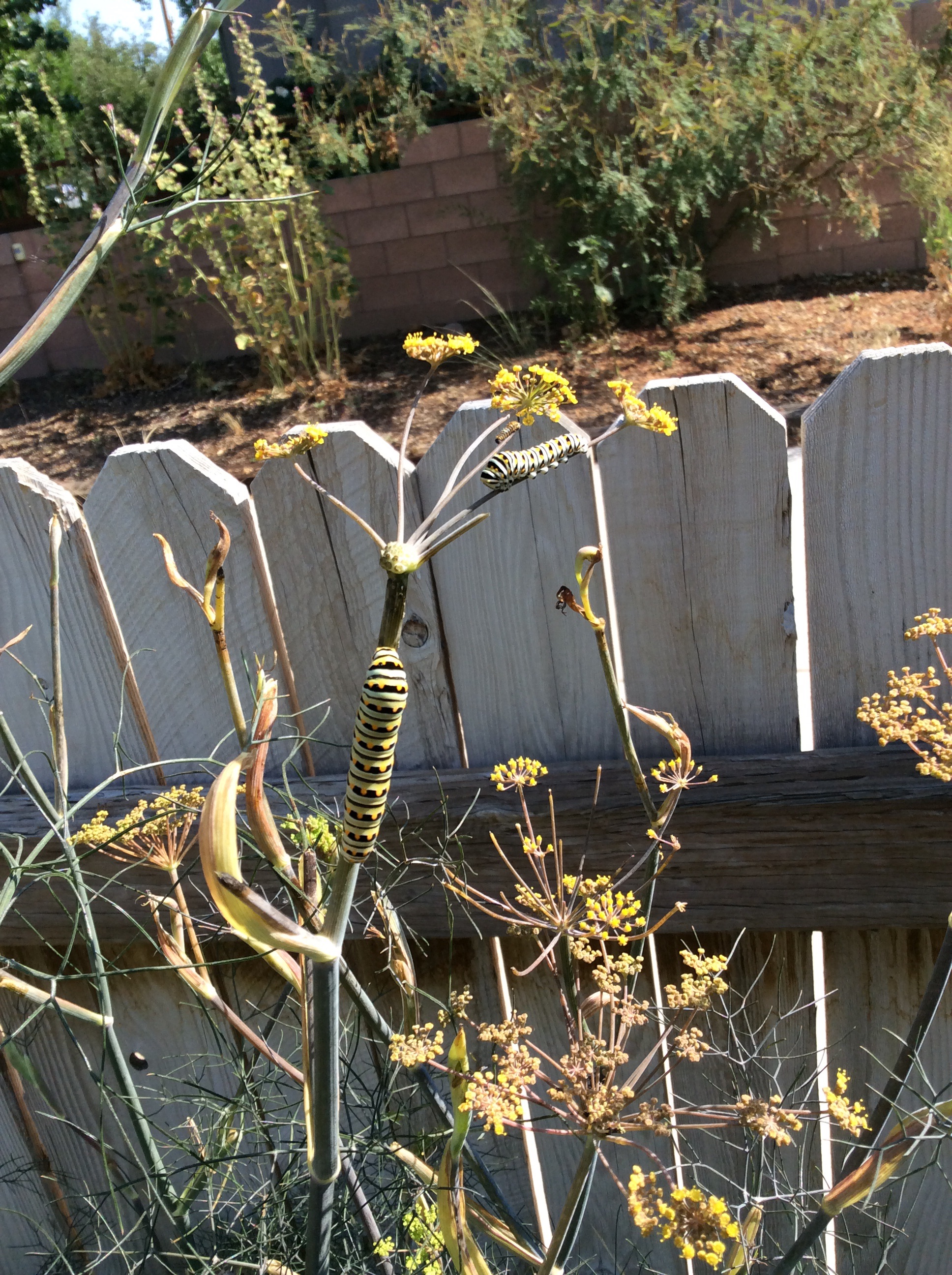 One of the lovely fringe benefits of gardening organically is that you support a lot of wildlife. Just this morning when I went out to inspect my garden, I noticed anise swallowtails around the flowers and their caterpillars on the fennel.