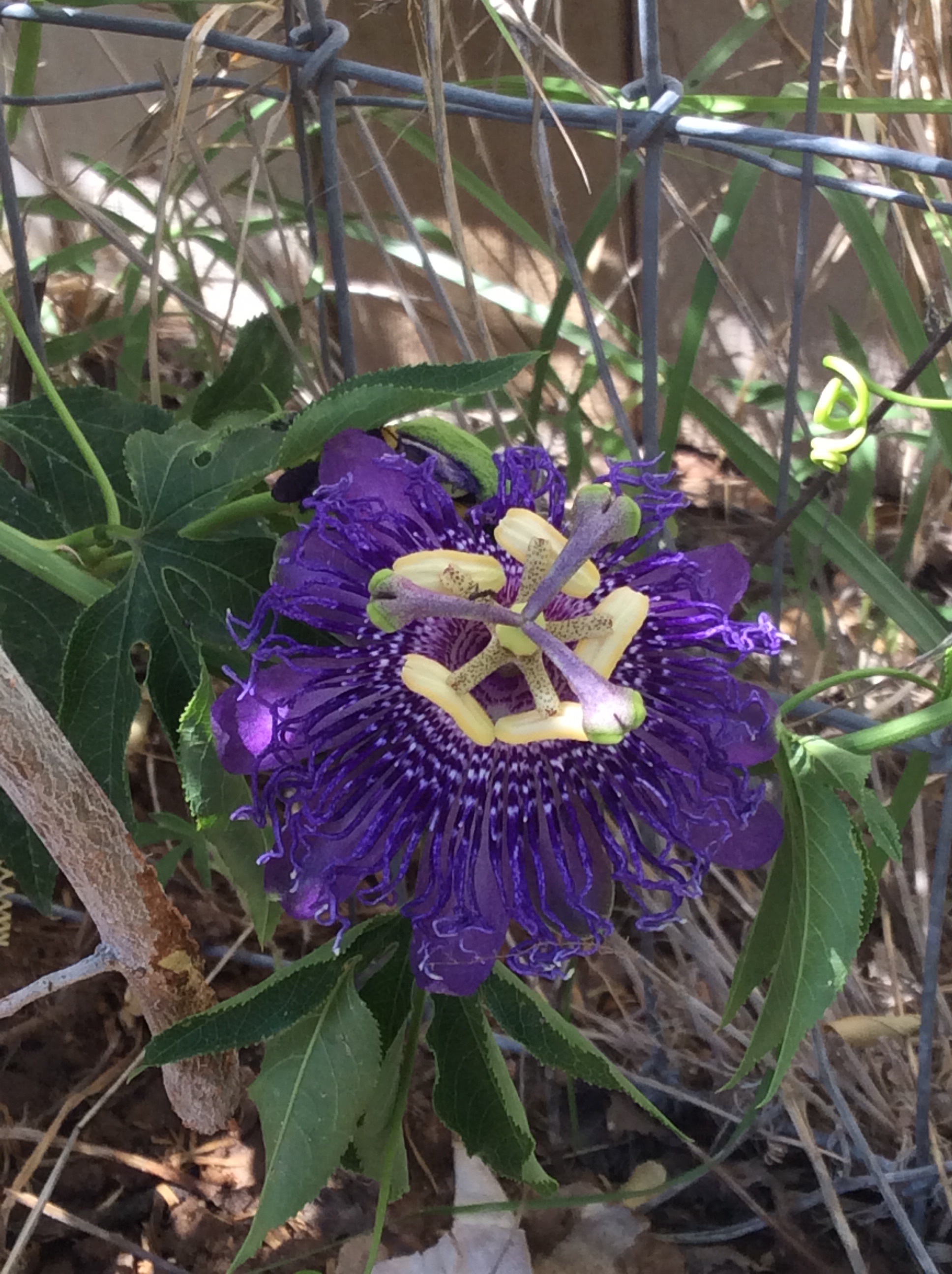 There are few plants I love more than the common maypop, Passiflora incarnata. There are also few plants that I have failed with as consistently since moving to the Southwest. I think it might be our alkaline soil and water that they dislike. This spring, in what has become a yearly ritual, I ordered a plant. I tried amending the soil in that area with acidic cottonseed meal and gypsum. Then I walked away and, beyond regular watering, did nothing more, which made it all the more marvelous when I spotted the first flower.