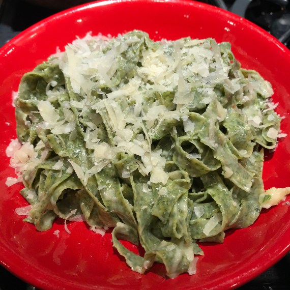 We found this absolutely delicious, but then it’s hard to go wrong when you’re using really high-quality Parmesan. It makes everything taste good, so I make no special claims for my leaf pasta. I can say that there is no strong or objectionable flavor of any kind and the texture is light and lovely. It makes use of one of the most Godawful weed trees imaginable, and makes it taste good, and I am satisfied with that. Beyond question, it adds additional fiber to the pasta. What it adds beyond that is unclear, since there is no nutritional analysis of Siberian elm leaves that I can locate. Be satisfied with the fact that you are eating your invasives and they taste good.