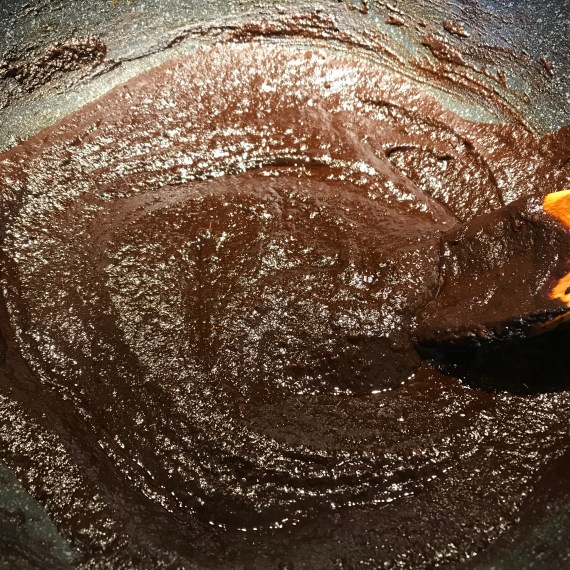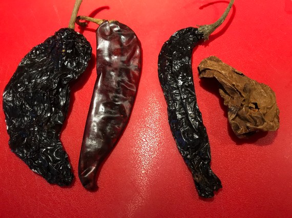Snip the stem end off each chile and shake out all the seeds you can. Discard the seeds. Put the chiles in a small saucepan over the lowest heat and cook somewhere between 20 and 30 minutes, stirring and shaking occasionally. When you start, notice the sound they make when you stir them, because your best indication that they are done is when the sound becomes higher pitched and somehow drier. They will be a couple of shades darker and a little smoother and glossier than when you started, and more brittle if you squeeze one between your fingers. Be careful not to scorch them.