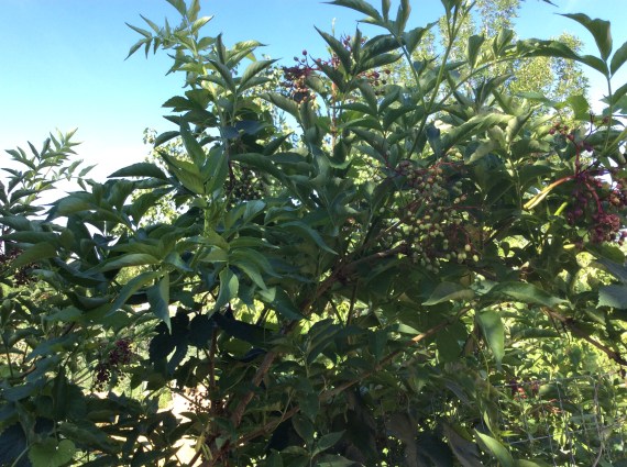 European elderberries, Sambucus nigra, are another desired plant that I was never able to grow until the mulch provided a more hospitable habitat.