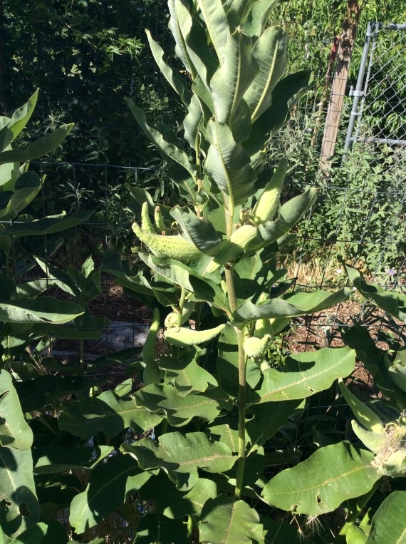 Other perennial weeds are far more delightful. Common milkweed was my favorite perennial wild edible when I lived in the Northeast, and I’m creating a few patches of it here to feed us if there are years that I can’t plant annual vegetables. As the seedpods mature I’m moving them to new parts of the yard. This spring I noticed that some seedlings struggled up through thick mulch, saving me the usual labor of weeding around the tiny plants for a couple of years while they get established, so this fall I will try just “planting” seed pods here and there under mulch to see if I can start new clumps that way. Once well established a clump of milkweed takes care of itself, and it’s pretty hard for other weeds to get a foothold. The delicious shoots emerge late in the spring, so be careful not to dig them up by mistake when the early-spring digging fervor hits you.