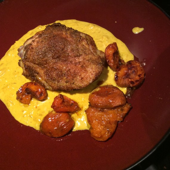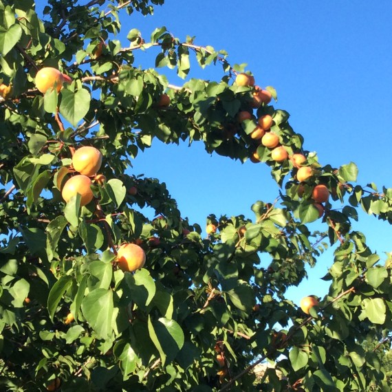 My fruit trees appreciate the even moisture under a deep mulch. In our hottest summer so far, after our driest winter in memory, my apricot tree was loaded. I had to fight my local squirrel family for them but I don’t mind a little healthy competition. I made Indian pickles out of some of the unripe fruit, rather like the ones made from green mangoes, and they were good enough that I wish I had made more. I also roasted a lot of apricots for use in savory dishes. They are very delicious in this form, and freeze pretty well. Below, they harmonize with roast chicken in saffron cream sauce.