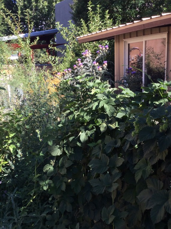 A deep permanent mulch creates a living and lively ecosystem and you can watch its capacities change over the years. I’ve tried for years to grow blackberries, but in my very alkaline clay in broiling sun they were a no-go. Now, in mulch with some shade, they are thriving.