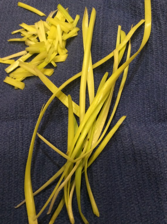 This time of year, so much is coming up and I am so busy planting, gathering, cooking, and preserving that often I don’t get any of it written about. But I did want to throw in a quick note about garlic chives. I have had a couple of clumps of them going for two years, but I have tended to forget to use them. I have, however, read that they are often eaten blanched in Asian countries, and I wanted to try that.