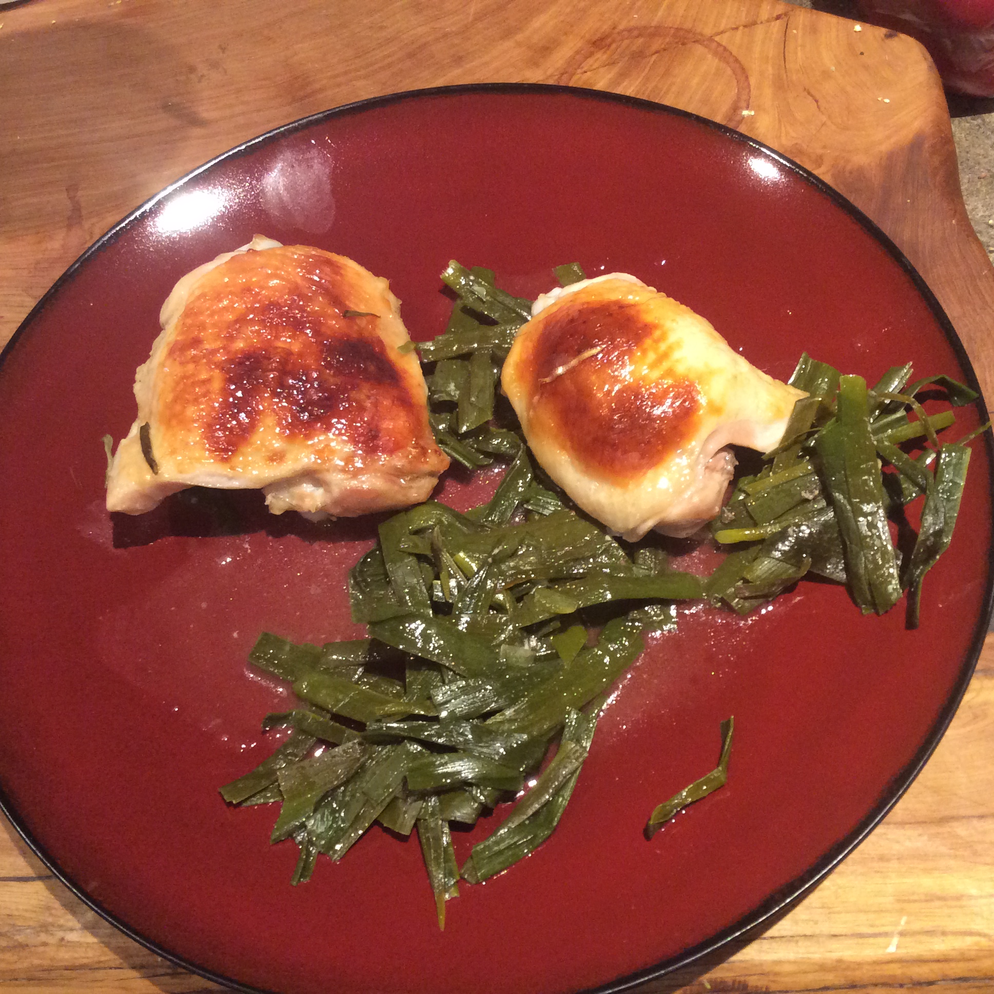 Now look at the stalk on the left in the top picture. It shows a definite forming bulb, but the leaves are still bright green with no sign of yellowing and there is no scape. It is still usable, and delicious, it is just a little closer to being mature garlic than the others. Your best kitchen knife is an extension of your hand, and will tell you whether it’s still usable. If the skin slices easily and finely without presenting any obstacle to slicing and is not at all papery, you will still enjoy eating it with the rest of the green garlic. Just slice the bulb part thinly and chop it up a bit, skin and all. Garlic is a true nose-to-tail vegetable and you can eat every bit of it, but each part has to be eaten at its proper time.