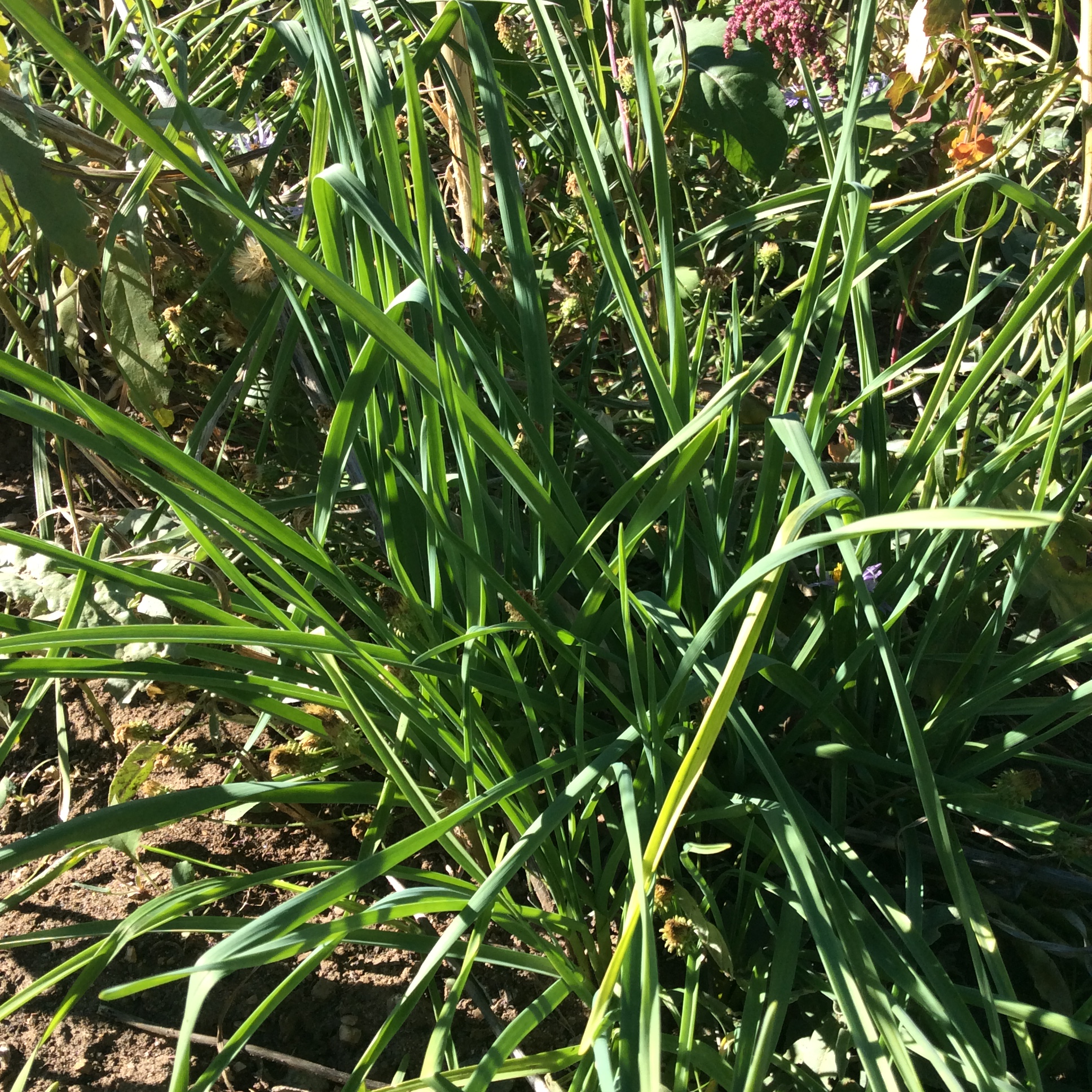 At this point I would have to classify elephant garlic as an invasive, because no matter how much of it I pull up, I always seem to have even more the following year. When I threw an arm full on top of straw mulch just to get rid of it, it sent roots down through the mulch and took off as you see above. I don’t mind it, though. It isn’t much use as a bulb and does not compare to true garlic, but I like the early shoots for green garlic, so it does have a use, and the bees enjoy any flowers that I allow to form.