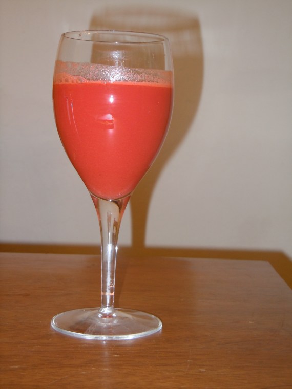 Run four apples, four large carrots, and one prickly pear fruit (two for a deeper red rather than the sunrise shade above) through your juicer. POur the juice into a clear goblet so that the color can be admired. Drink. Dispose of the pulp by burying it in a part of the garden that animals can’t get at- many animals are drawn to fruit sugars, and you don’t want all the horrid little spines in the pulp to torment any animal, wild or tame. For the same reason, handle the pulp with a wooden spoon or thick gloves, not your bare hands.