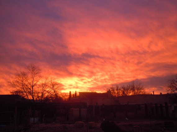 For me, feeling reverent rapture (or anything, really) before sunrise qualifies as something I don’t usually do. It takes real effort for me to function early in the morning, and a glass of fresh juice eases the effort.  A juicer puts healthy stuff in your cup quickly, and doesn’t need to be expensive. I bought a reconditioned one and it works fine. Your own stored apples and carrots, or organic ones from the store, make a great seasonal juice. Prickly pear fruits are still perfectly good on the cactuses that we have everywhere, and juicing disposes of the spine problem. One prickly pear fruit, or tuna, will give a dramatic sunrise color to two big glasses of juice. To my palate the fruits don’t have a lot of flavor, but the color is reason enough to use them.