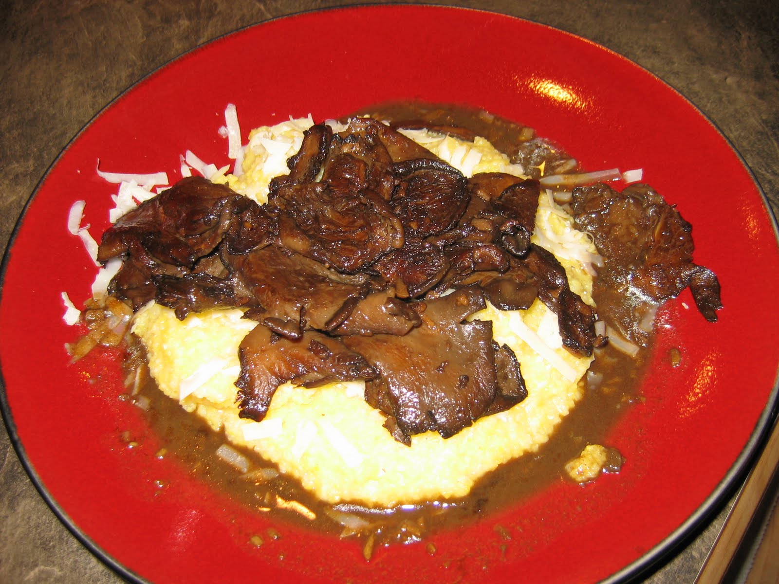 Recently I was asked to do a blog for our local newspaper weekly for a month (you can see the first post here) which has left limited time for my own usual blogging. But I did want to throw out a quick reminder of some of our best local delicacies. Among my favorites are the lovely pearly oyster mushrooms from Exotic Edibles of Edgewood, available at the downtown growers’ market and at both Albuquerque branches of La Montanita Co-op.They are delicious roasted and served over polenta.