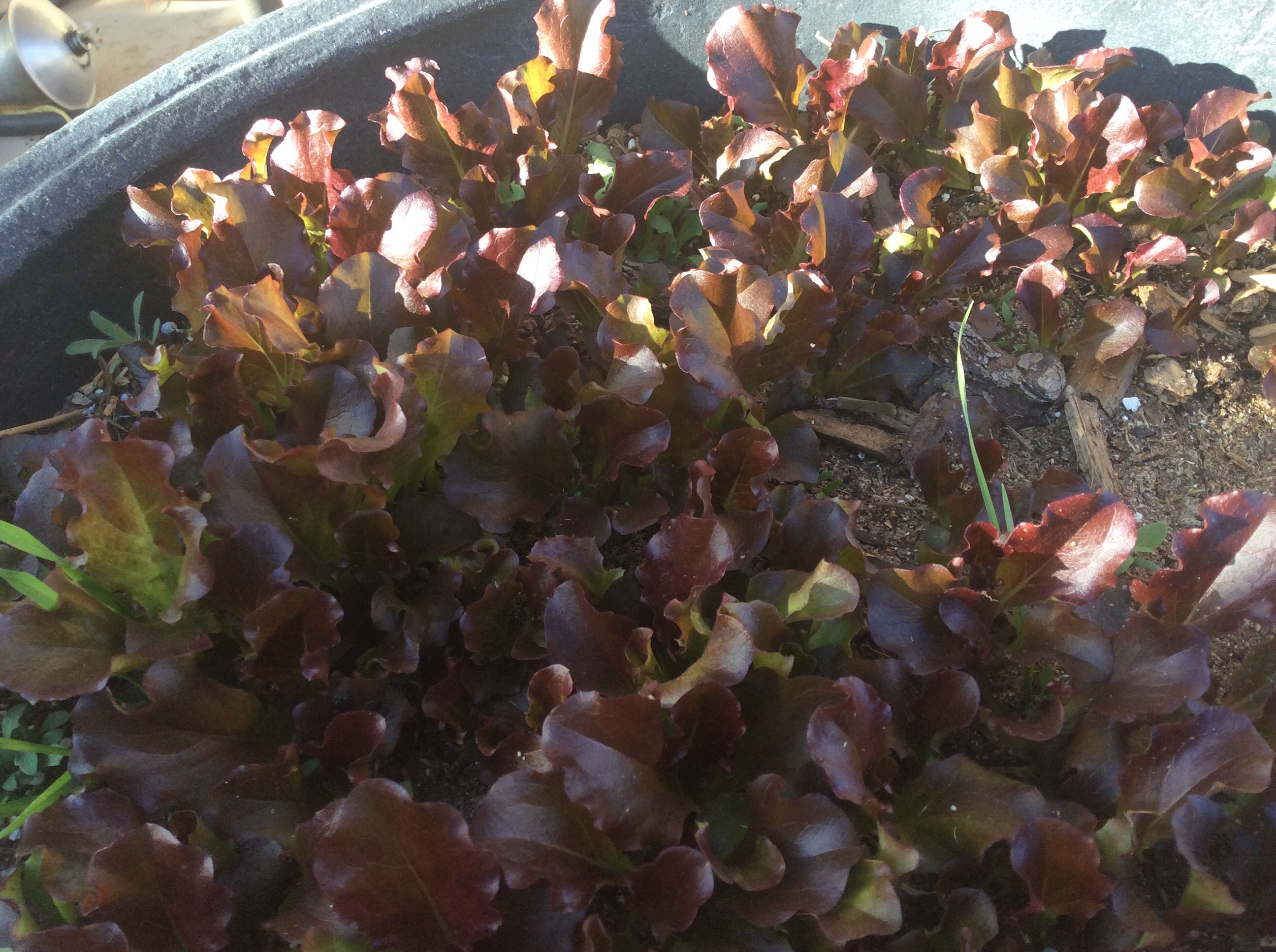 This one is in one of the large pots. The lettuce is about 2 inches high, and won’t be ready to harvest for a few weeks.