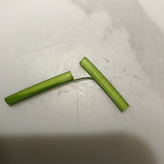 When you see “scape bark” like this, peel it off the sections on each side of the break. If a long tough piece peels off, I use my thumbnail to start peeling the rest of the outer skin on that scape. It sounds tedious but doesn’t really take that long and produces a much nicer finished result.