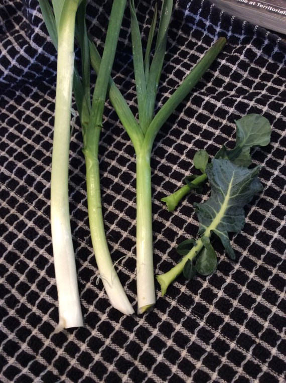 Personally I think that some alliums are always needed for a really good flavor, and if green garlic was not in season I would use perennial green onions or garlic chives, both of which will grow extremely happily in almost anybody’s soil. But don’t get too concerned about specific ingredients, just think about what is fresh and what tastes good together. The whole idea is to have the pleasure of something on your plate that tastes of the growing season.