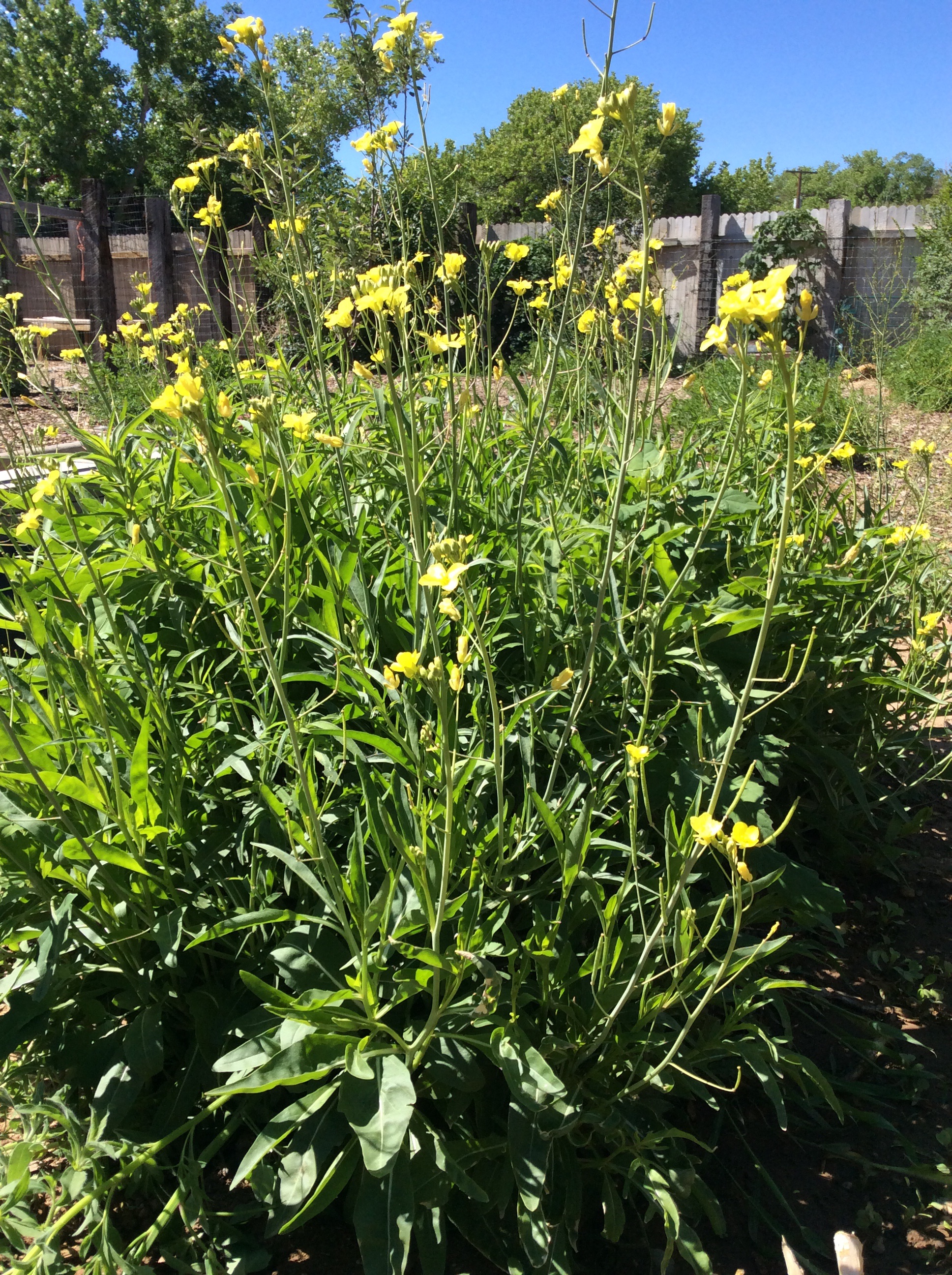 I have written frequently about annual arugula and how delicious, versatile, and easy it is. A few years ago I bought a packet of seed for perennial arugula, Diplotaxis tenuifolia. I planted them in a likely spot and then, as so often happens at my place, I was overcome by the sight of bare earth, forgot I had sown seeds already, and planted something large and rambunctious there. At the end of the gardening year I cleared the debris away and found tiny wispy plants that I recognized as the perennial arugula. They survived the winter, resprouted tentatively in the spring, and then all of a sudden they were a mass. A thuggish mass, ready to overpower anything in the way of their gangland fervor for territory. And they were, literally, hot. The initial flavor when I chewed on a leaf was pleasantly mustardy, developing gradually to a burn in the back of the throat as I swallowed that wasn’t painful, but certainly wasn’t pleasant either. While I puzzled over how to use them, they bloomed, and the delicately pretty sulfur-yellow blossoms drew bees from miles around. So, needless to say, they were kept.