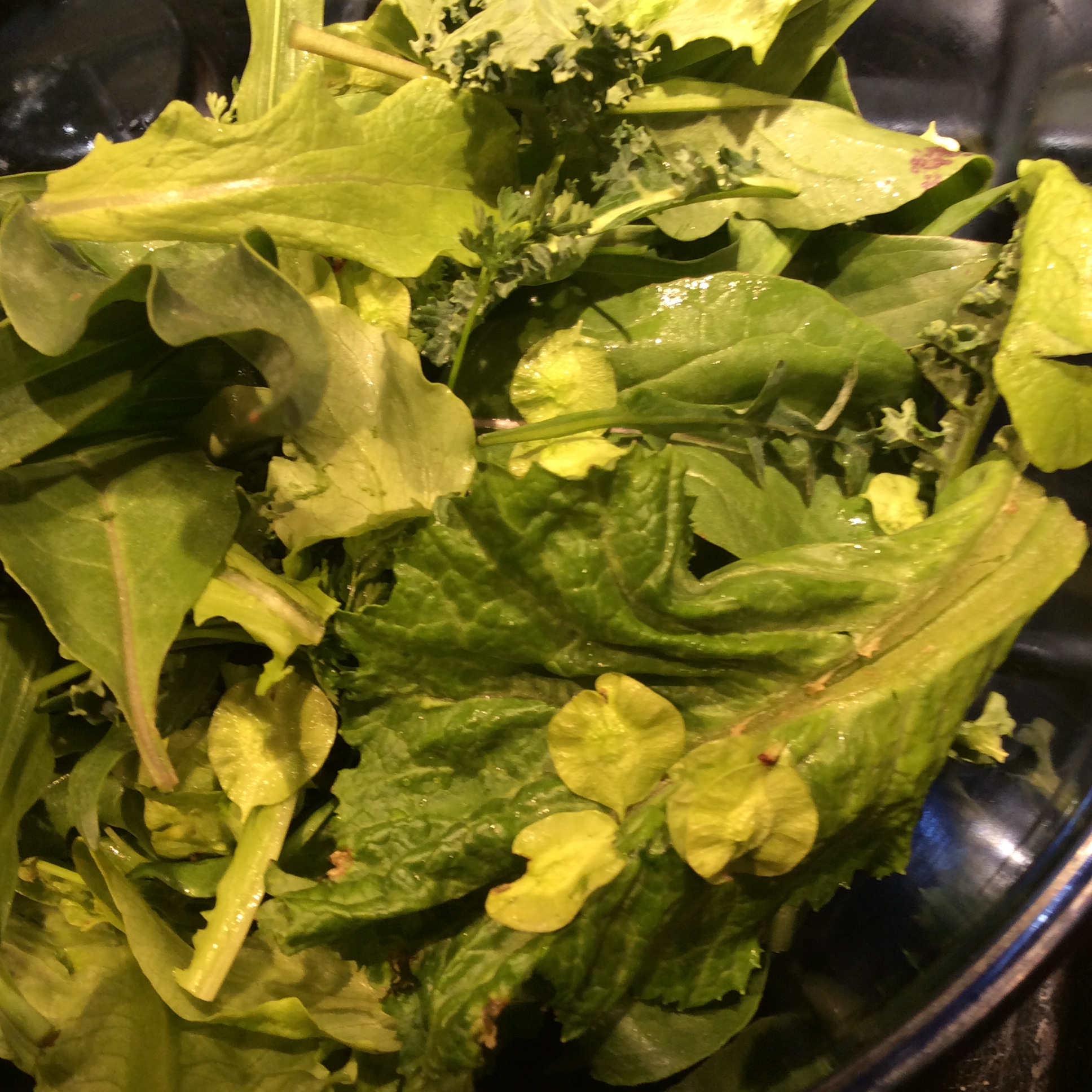 Sow thistle has thick leaves with an intensely green flavor. In some soils I’m told that it’s bitter at all stages, but in my yard it’s mild when young. I don’t have much of it, but enjoy what I have.
