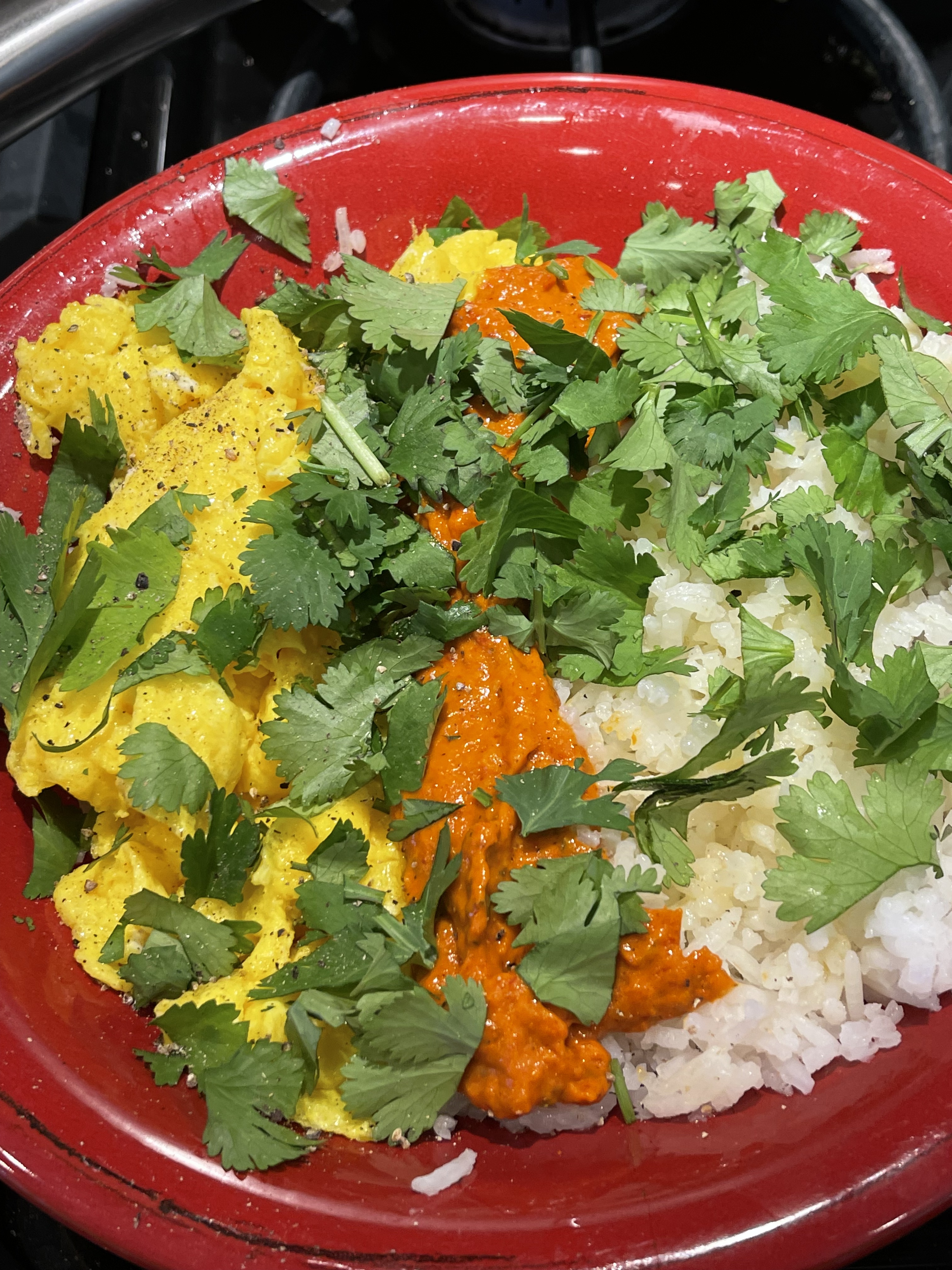 I think this harissa has a particular affinity for eggs, and we recently made a quick meal of scrambled eggs and hot buttered basmati rice in a bowl with a lavish amount of harissa and chopped cilantro leaves. Delicious. I also like to make a spicy egg salad with hard-boiled eggs and harissa and pile it on a chunk of good baguette.