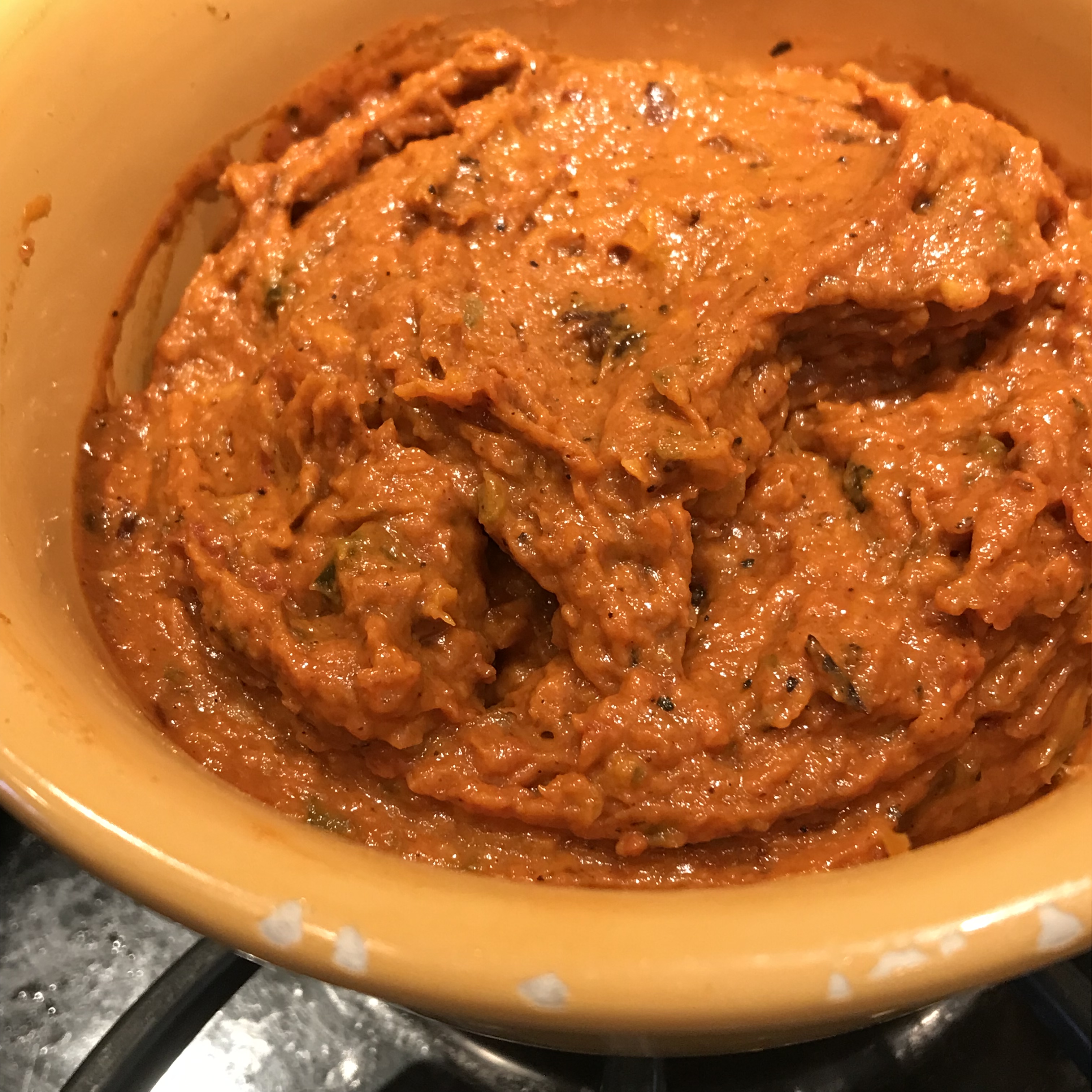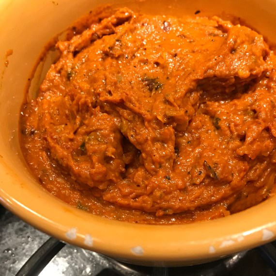 This particular iteration is rather like a thick, textured mayonnaise with the emulsion based on roasted vegetables instead of egg. It‘s a variation on the recipe for Mo’s Harissa in Wild Flavors by Didi Emmons, but Ms. Emmons’s version just dries out the vegetables in a warm oven for a little while, while I like them actually roasted.