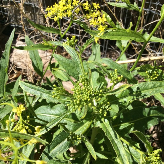 As so many have discovered before me, the leaves are so strongly mustardy that they create quite an unpleasant burn in the back of the throat, and they are not a culinary object as far as I am concerned. Even my goat wouldn’t eat them.