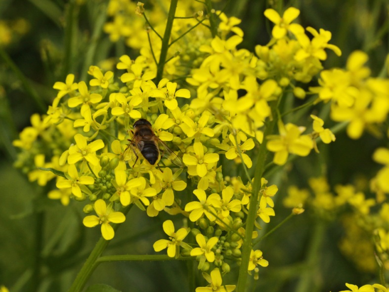 Then there is the flowering stage at which it is a bright cheerful yellow and is a fair bee plant, not highly preferred but certainly visited.