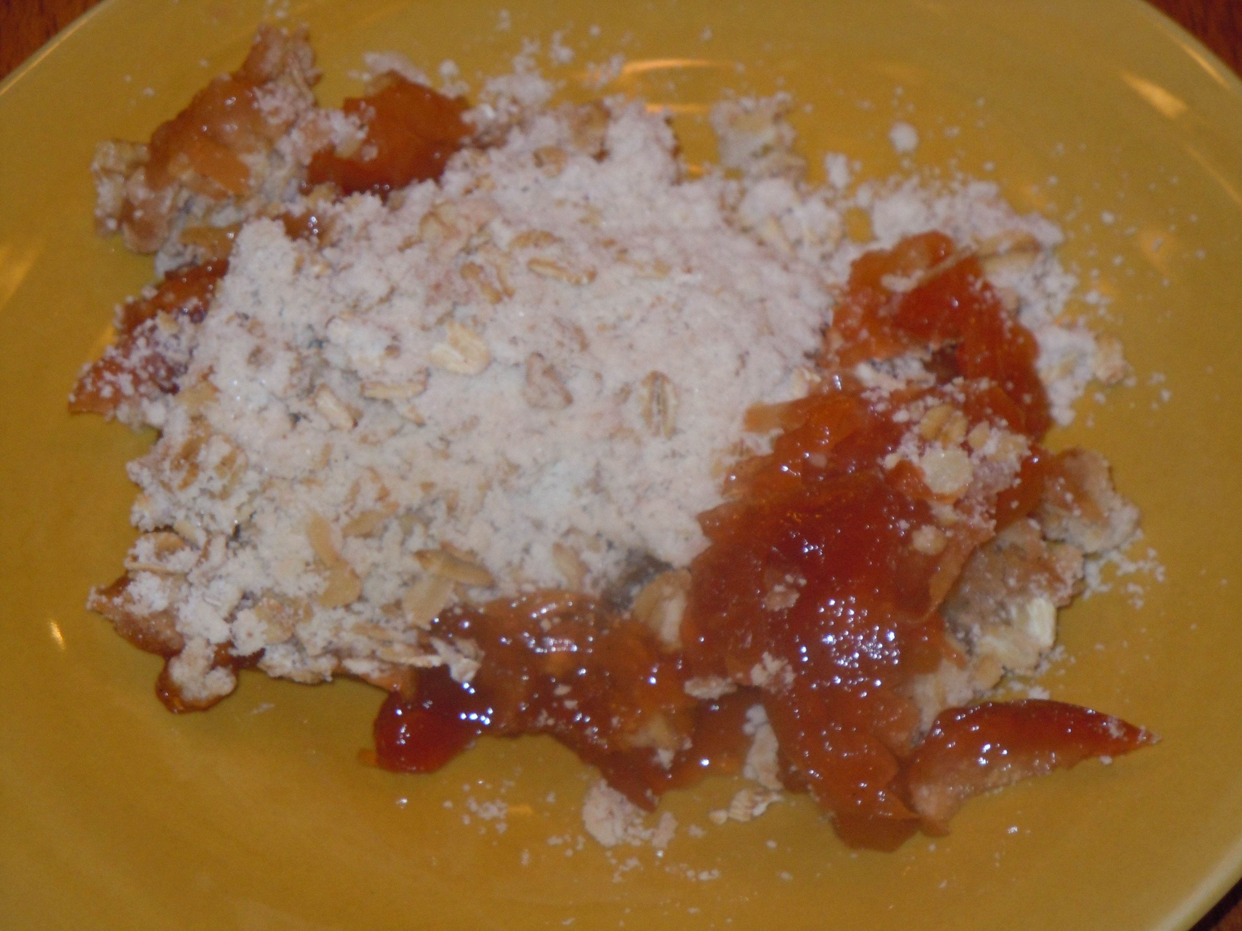 The desert is not terribly sweet, and I love it that way. If you prefer, you can add a little more sweetener to both the apple mixture and the topping. This topping is very crumbly and crispy. If you want something more like a cake topping, you can add an egg and a little milk and a pinch of baking powder to the dry mixture, but keep it on the dry clumpy side and don’t stir it too much, or you’ll develop the gluten in the flour and make it tough. This version doesn’t reheat nearly as well as the crumbly version.